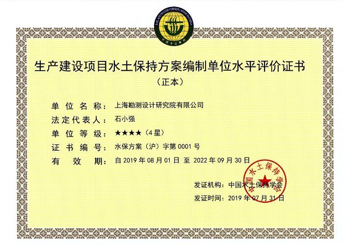 水土保持方案編制水平評(píng)價(jià)證書(shū)4星